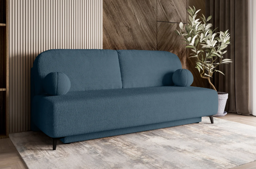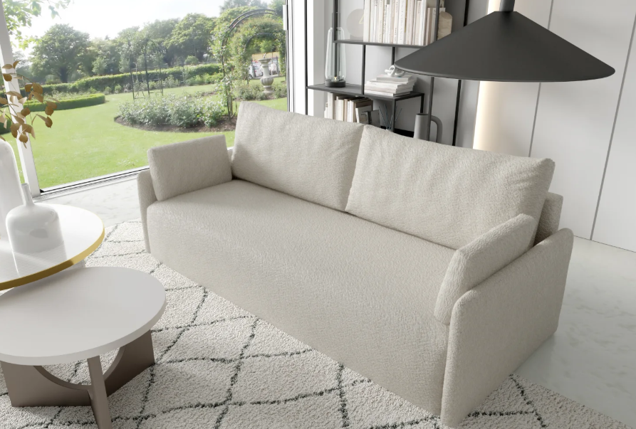 W małych mieszkaniach kluczowe znaczenie ma sposób rozkładania mebla. Kanapa rozkładana do przodu wysuwa się w linii prostej, dzięki czemu nie wymaga odsuwania od ściany ani reorganizacji całego pomieszczenia. To sprawia, że sofa rozkładana do przodu może stać nawet w bardzo wąskim salonie lub pokoju dziennym.