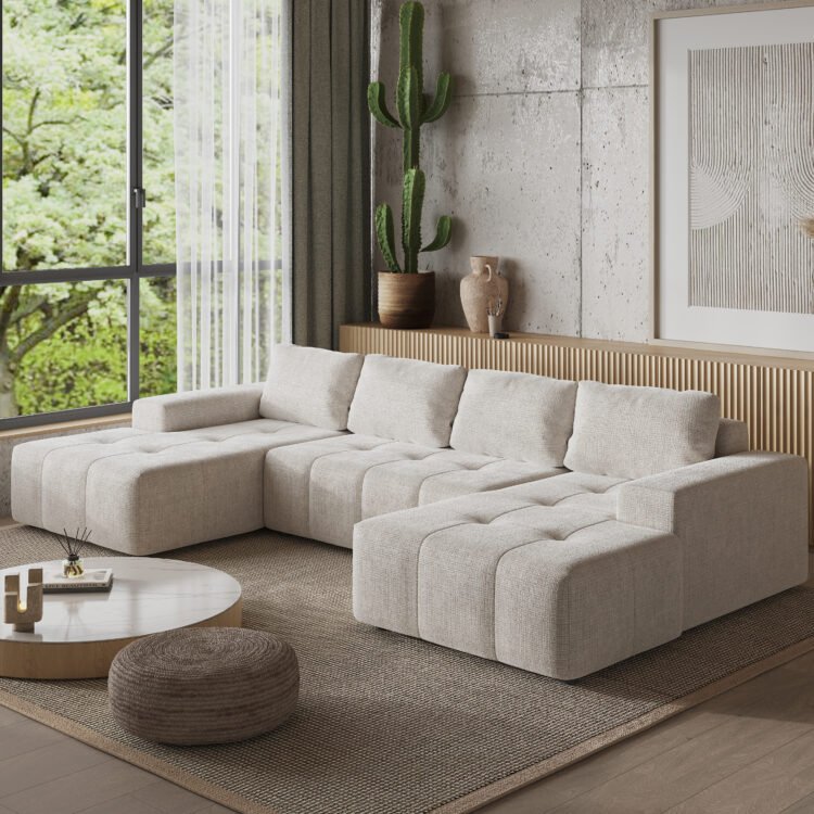 Duży narożnik w kształcie U BERGAMO – wielka elegancja i przestrzeń w Twoim salonie