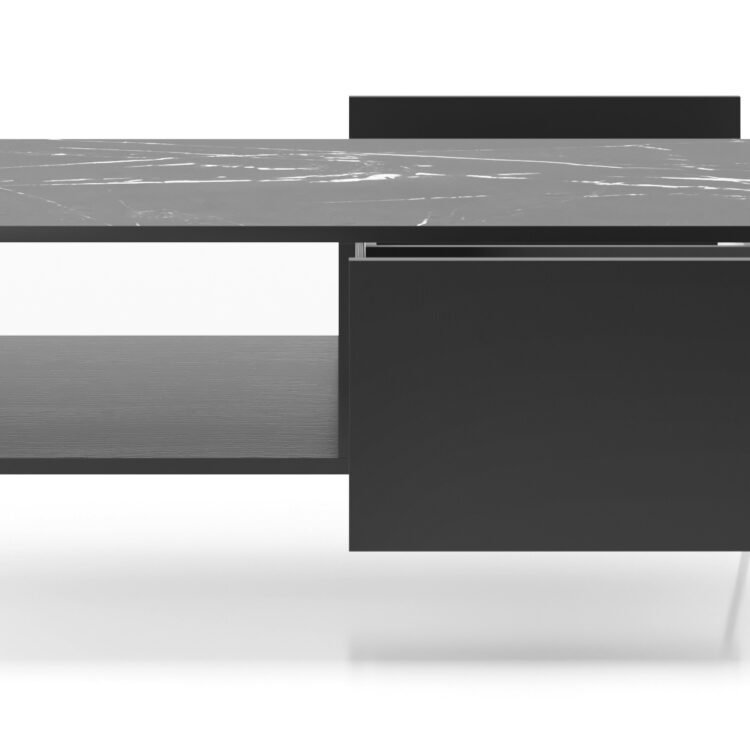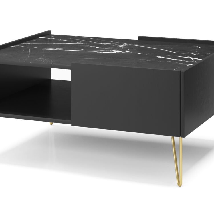 EBORIA L97 łączy luksus, funkcjonalność oraz nowoczesny design, co sprawia, że doskonale wpasowuje się w różnorodne aranżacje. Blat z marmuru black royal nie tylko nadaje ławie wyjątkowy wygląd, ale dodatkowe elementy, takie jak szuflady, zwiększają jej funkcjonalność, co z pewnością przypadnie do gustu wielu użytkownikom.