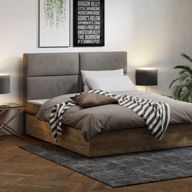 To łóżko zachwyca swoim minimalistycznym designem, który podkreśla zarówno elegancję, jak i prostotę. Posiada solidną ramę, która zapewnia stabilność i trwałość. Wysokiej jakości tkanina Trinity, którą obite jest łóżko, jest przyjemna w dotyku i dzięki powłoce hydrofobowej oferuje dodatkową ochronę przed zabrudzeniami i wilgocią. Praktyczny mechanizm sprężynowy ułatwia dostęp do przestronnego schowka na pościel znajdującego się pod powierzchnią spania. Bogata paleta kolorów umożliwia łatwą integrację łóżka w różnych stylach sypialni, czyniąc je stylowym i funkcjonalnym punktem centralnym pomieszczenia.