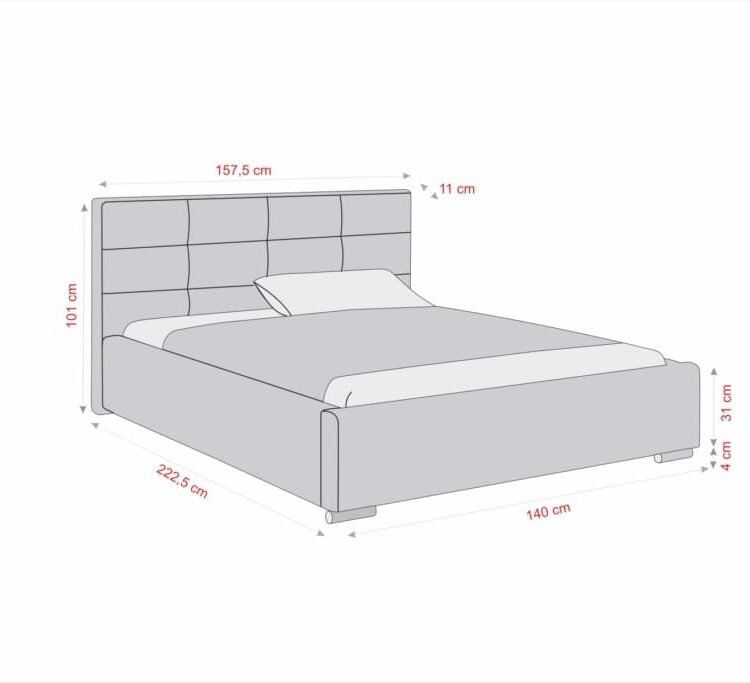 - Powierzchnia spania: 140/160/180 x 200 cm + 17,5 cm (całkowita szerokość)