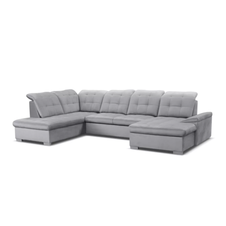 Narożnik w kształcie U ELEN to elegancki i funkcjonalny model stworzony do większych salonów. Łączy nowoczesny wygląd z wygodą codziennego użytkowania. Dzięki dużej powierzchni siedzenia i dwóm otomanom po bokach zapewnia komfortowy wypoczynek dla całej rodziny.