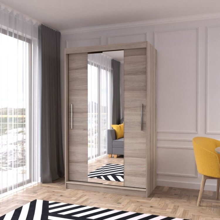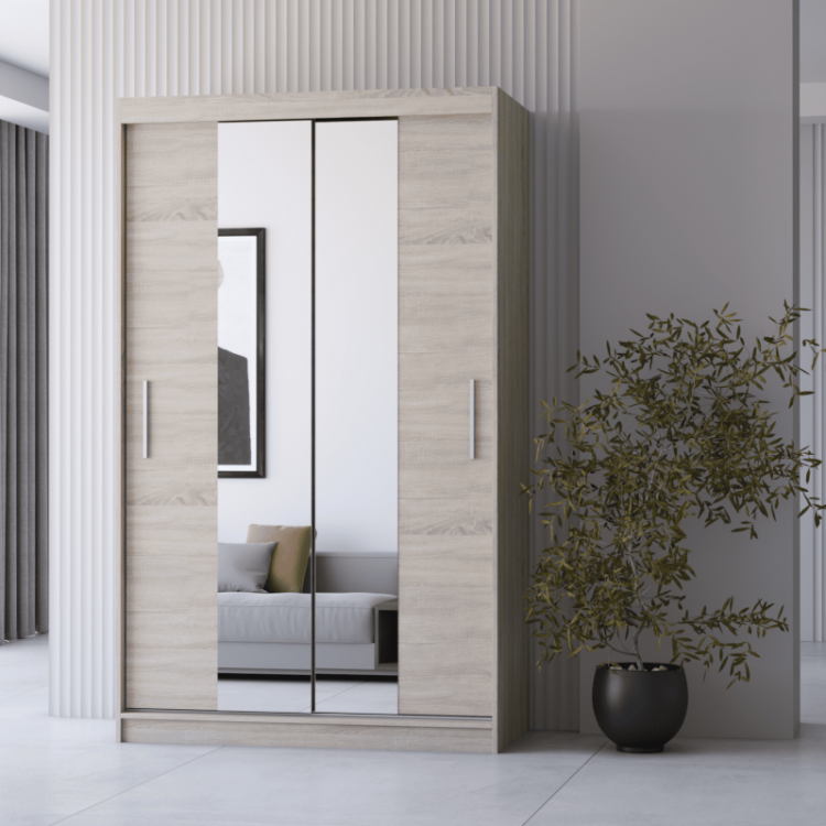 Szafa ASPEN 01 to nowoczesna szafa przesuwna w modnych zestawieniach kolorystycznych. Idealnie sprawdzi się w wielu wnętrzach. Szafa wyposażona jest w system drzwi przesuwnych, dzięki czemu jest łatwa w użytkowaniu i nie zajmuje miejsca. Podzielona jest na dwie części, wyposażone w kilka pojemnych schowków oraz drążek. Zamontowane na froncie lustro rozjaśnia i optycznie powiększa przestrzeń.