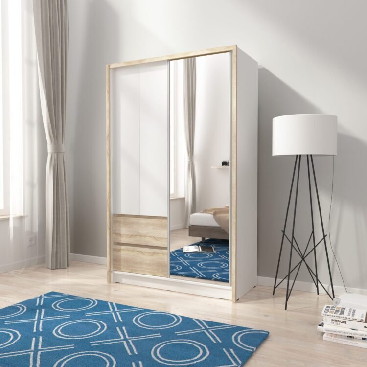 Szafa PURA 130 to nowoczesny mebel, który łączy elegancję z funkcjonalnością, idealny do wnętrz w stylu skandynawskim i industrialnym. Z charakterystycznym designem, szafa przesuwna z lustrem doskonale wpasowuje się w nowoczesne aranżacje, stanowiąc jednocześnie praktyczny element wyposażenia sypialni lub pokoju dziennego. Wyposażona w przesuwane drzwi z lustrem, szafa nie tylko ułatwia przechowywanie, ale także optycznie powiększa przestrzeń.