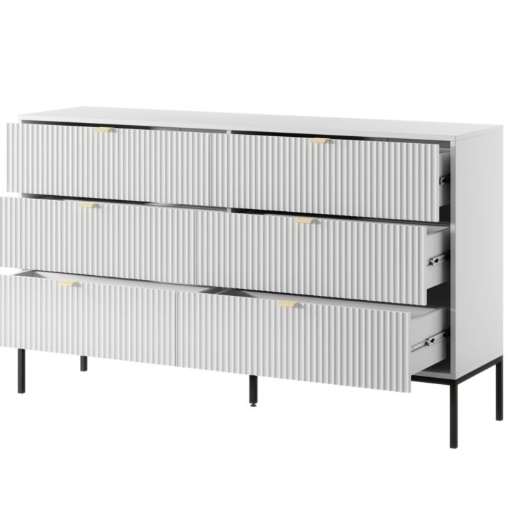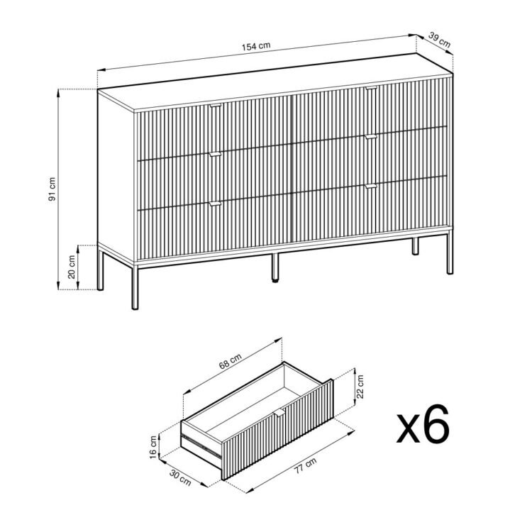• Funkcjonalność: Sześć przestronnych szuflad zapewnia mnóstwo miejsca na przechowywanie odzieży, akcesoriów, a także dokumentów, co pozwala na łatwe utrzymanie porządku w domu.